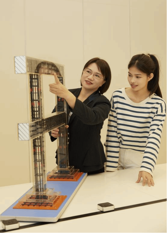 教師在建筑工程實驗實踐創(chuàng)新中心開展教學(xué)