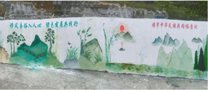 團隊創新文明實踐形式,舉辦“移風易俗入人心”宣講會,通過案例講解、知識競答讓文明理念深入人心;創作5幅主題墻繪,將“美麗鄉村”“民族團結”等主題融入藝術創作;組織紅歌會演,與村民同唱《沒有共產黨就沒有新中國》等經典曲目,激發奮進力量,為構建文明和諧的鄉村氛圍凝聚共識。
