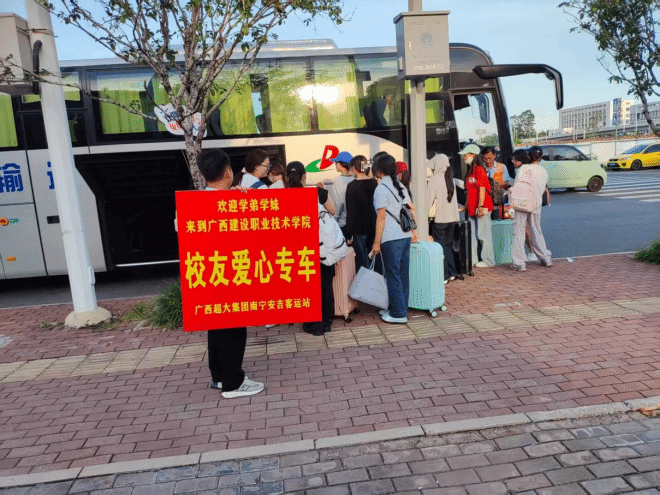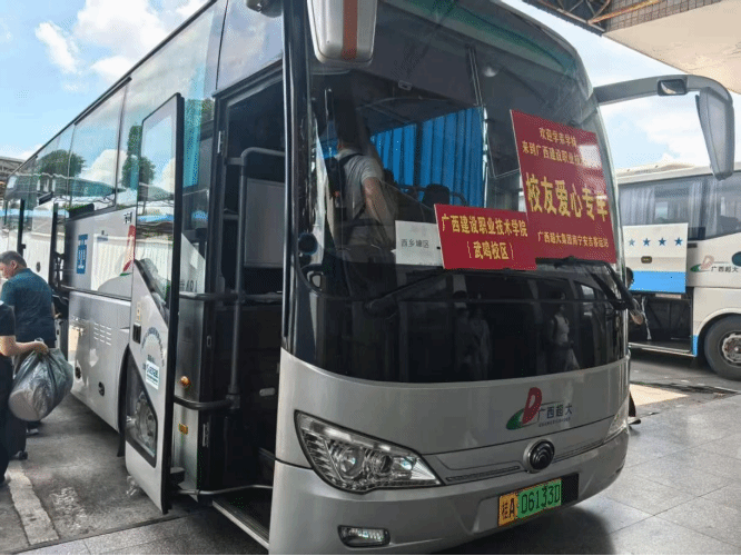 捐贈用車服務暖心迎新,退役軍人的“硬核”浪漫。2025年迎新季,得知武鳴校區迎新運輸壓力較大,范蓓龍主動聯系母校,無償捐贈專屬用車服務,用于新生接待工作。這些車輛承擔了武鳴校區4個學院3500余名新生的接站與轉運任務,累計發車20余班次,行駛里程達2000公里,有效緩解了校區的交通壓力。身著超大集團制服的駕駛員們專業、規范的服務,也成為迎新路上一道亮麗的風景。