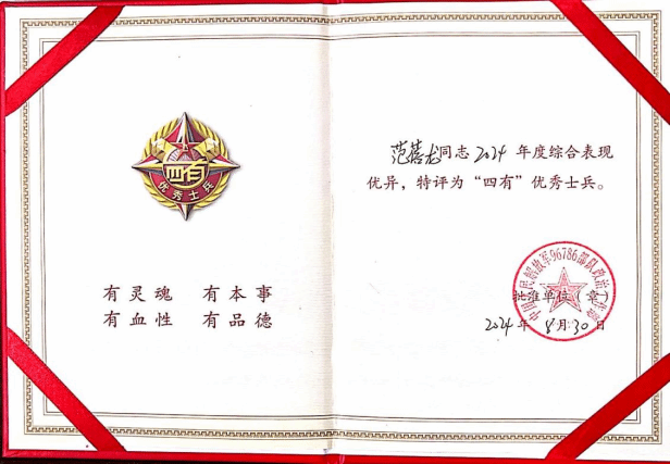 范蓓龍獲“四有”優秀士兵
