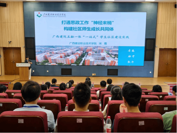 參觀結束后,宋霞老師以《打通思政工作“精神末梢” 構建社區師生成長共同體》為題,從建設背景、思路與實踐三個層面,系統闡述了我校“一站式”學生社區的建設理念與具體要求,并分享了我校“融思想、融文化、融專業、融技能、融生活”的“五融一體”特色建設經驗。