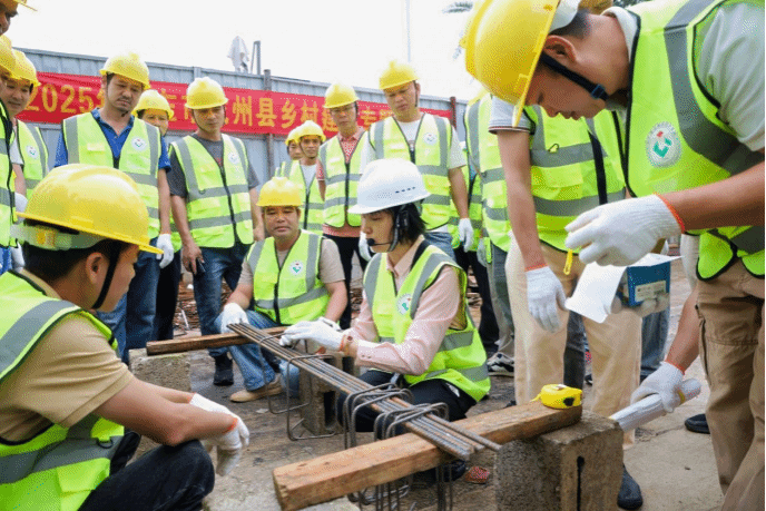 在龍州縣的實訓環節,學員分組開展坡屋面鋼筋安裝綁扎技能競賽,教師現場點評指導,村鎮學員代表交流經驗。這種以賽促學、學用結合的方式,極大激發了學員的學習熱情,有效提升了實操能力,進一步堅定了他們投身家鄉的信心。