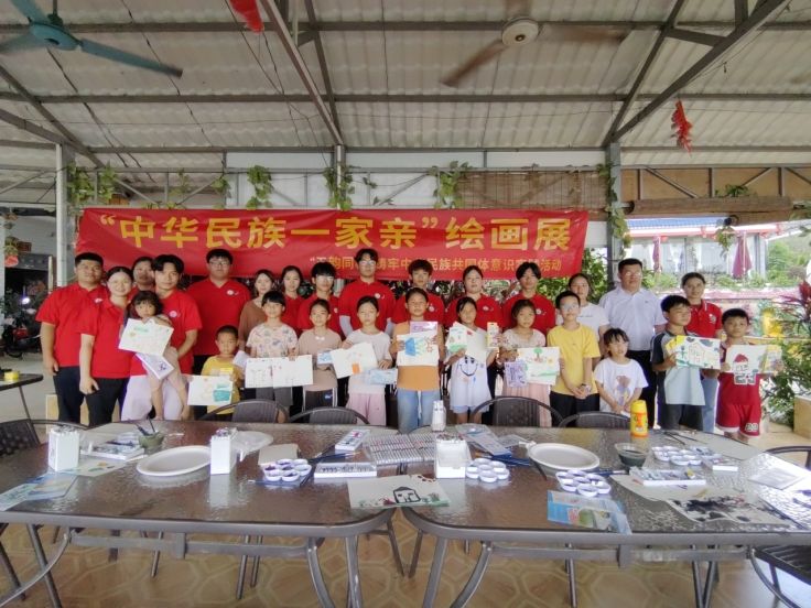支部黨員還帶領學生教村民用普通話講黨史、給孩子上“古建筑里的美術課”、幫老人用手機記錄非遺故事。以“非遺+趣味”為特色,為當地兒童開設系列文化體驗課程。在榫卯建筑手工搭建活動中,孩子們通過組裝構件感受傳統建筑的精妙;非遺扎染課堂上,藍白相間的圖案展現了傳統工藝的魅力;銅鼓模型制作環節,孩子們精心繪制壯錦紋理,體驗民族文化精髓;“我心中的三江坡”主題繪畫課則讓孩子們用畫筆表達對家鄉的熱愛。