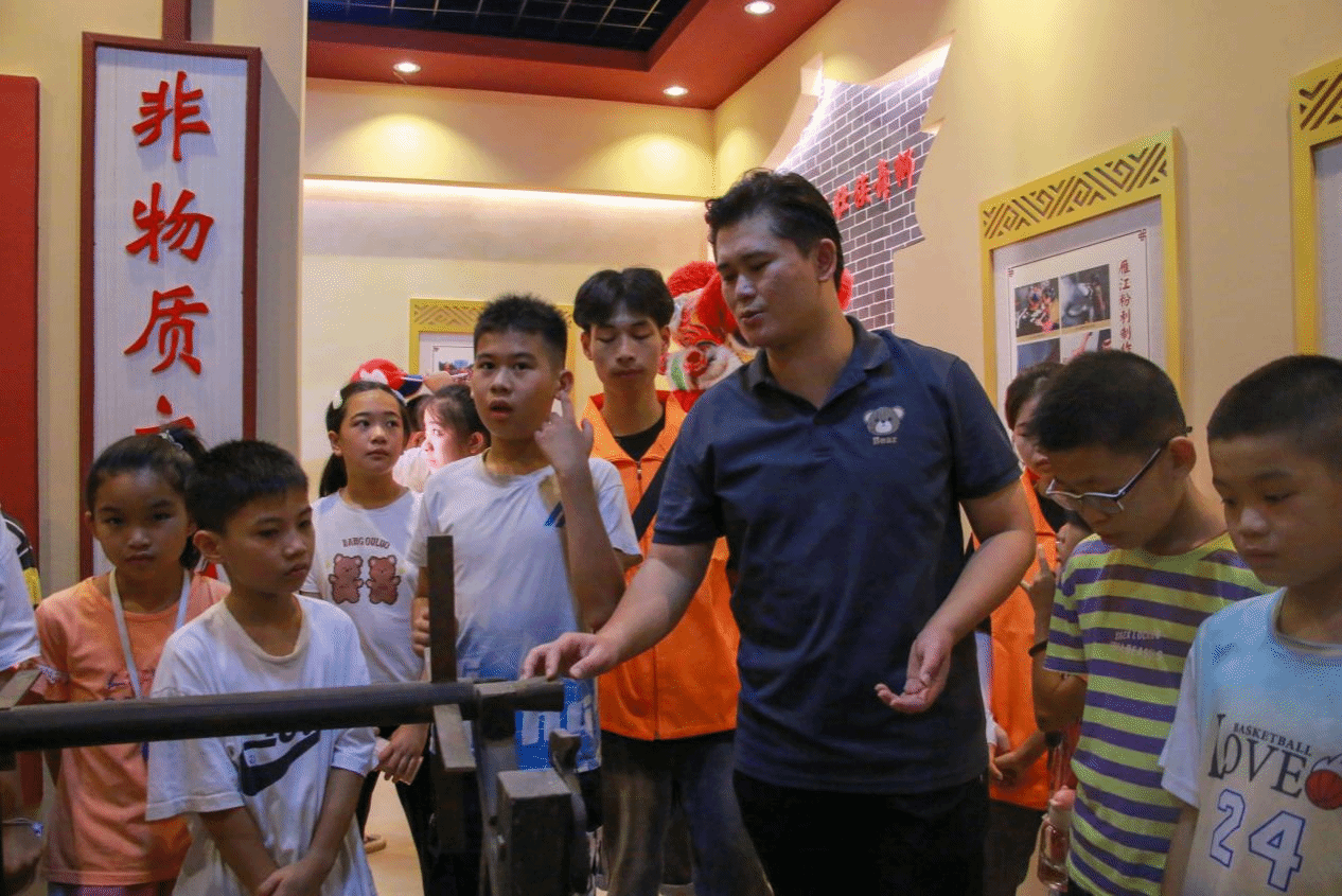 活動(dòng)中,實(shí)踐團(tuán)成員首先向安置區(qū)的小朋友們介紹了“那”文化的有關(guān)知識(shí),以課堂講授、小組討論、個(gè)人分享等形式調(diào)動(dòng)小朋友們了解“那”文化的興趣,課堂氣氛活躍,達(dá)到了良好的教學(xué)效果。在指導(dǎo)老師謝安妮、周楠的帶領(lǐng)下,實(shí)踐團(tuán)成員和小朋友們先后參觀了隆安縣非物質(zhì)文化遺產(chǎn)展示廳、隆安縣那文化展示廳。隆安縣文化館副館長(zhǎng)李晶、隆安縣文體旅游局原黨組書(shū)記黃連芳分別為同學(xué)們進(jìn)行了精彩細(xì)致的講解,讓同學(xué)們得以更深入地了解隆安“那”文化精神,實(shí)地感受了“非遺”的魅力。