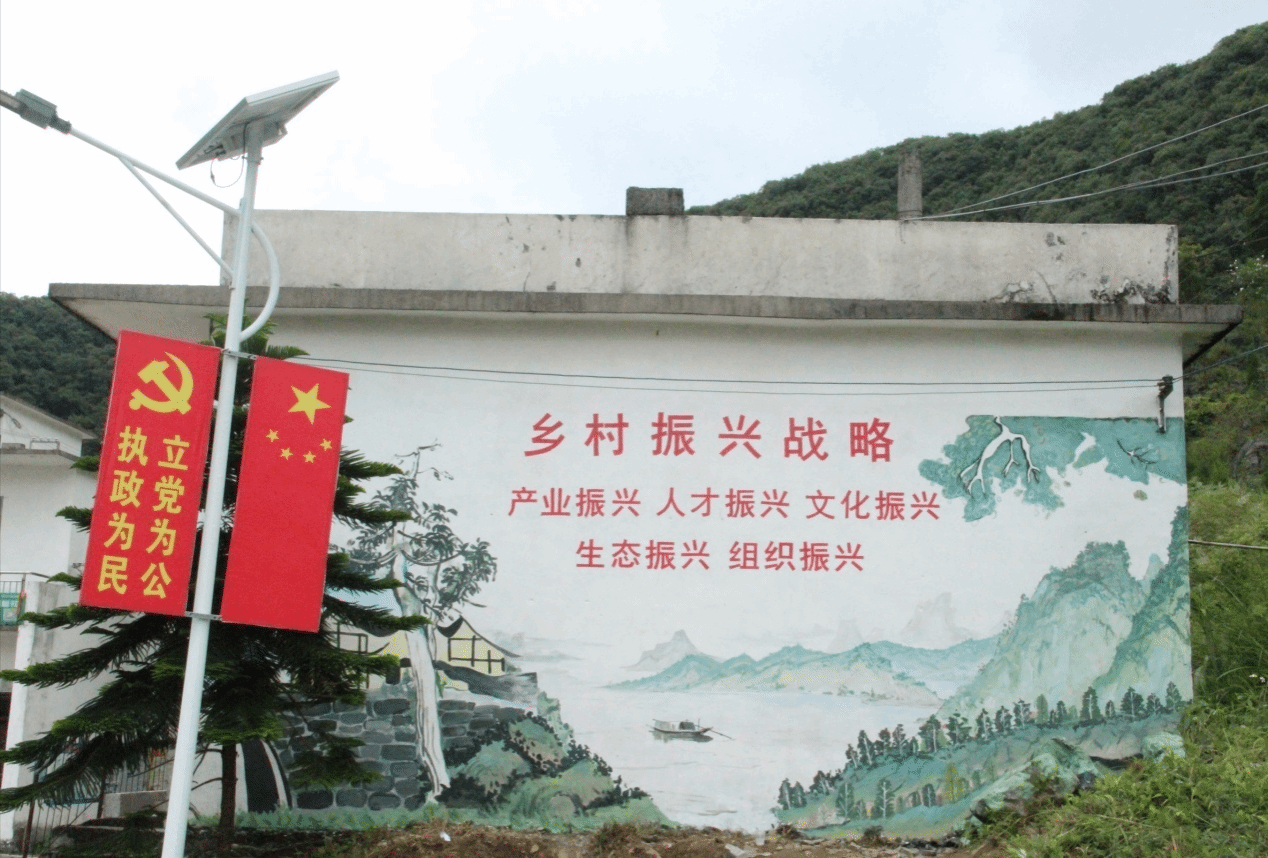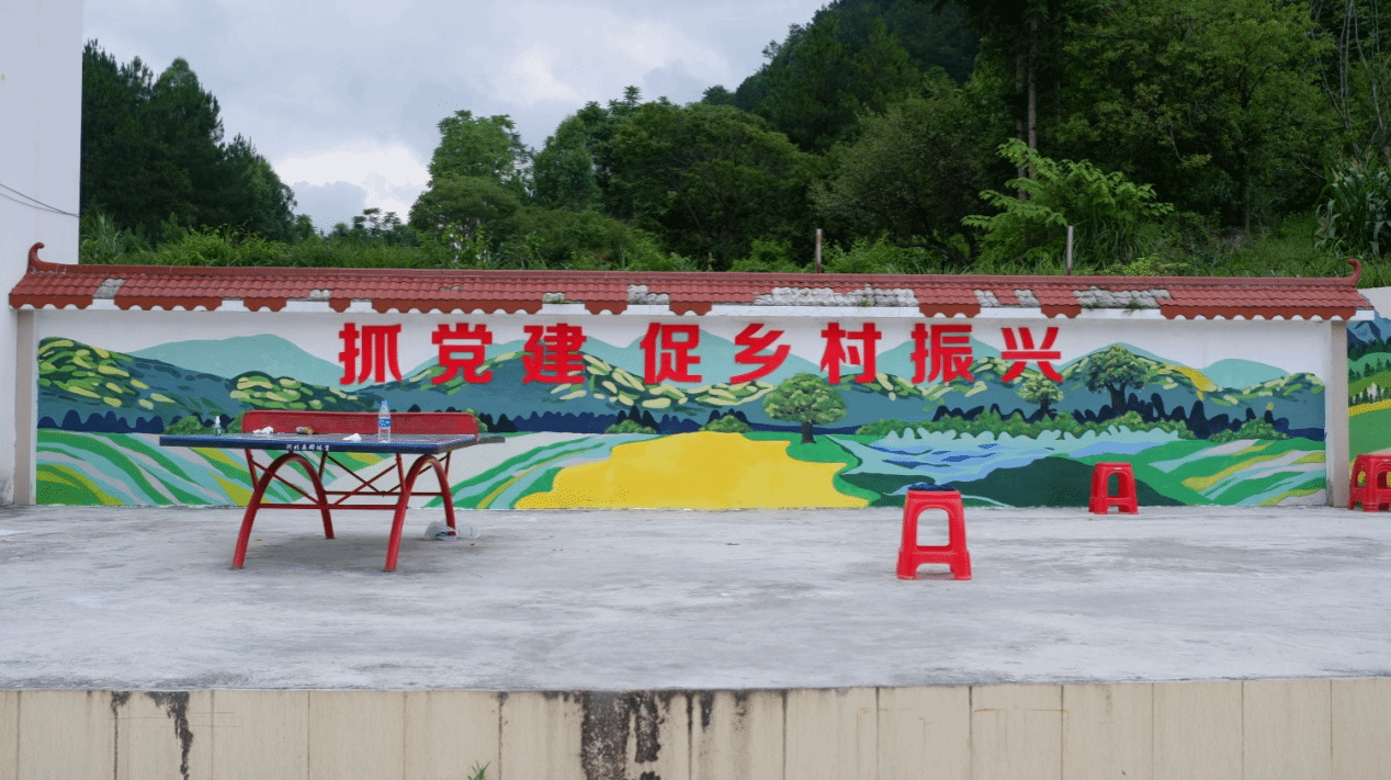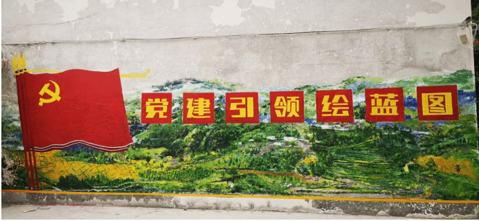 該實踐團2022年為河池市都安縣龍灣鄉(xiāng)繪制的“黨建引領繪藍圖”主題墻