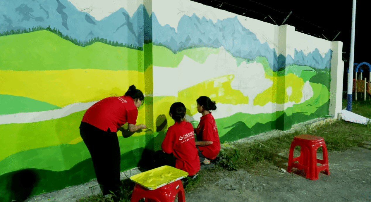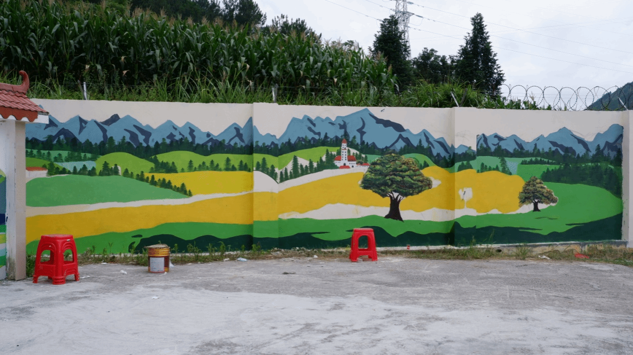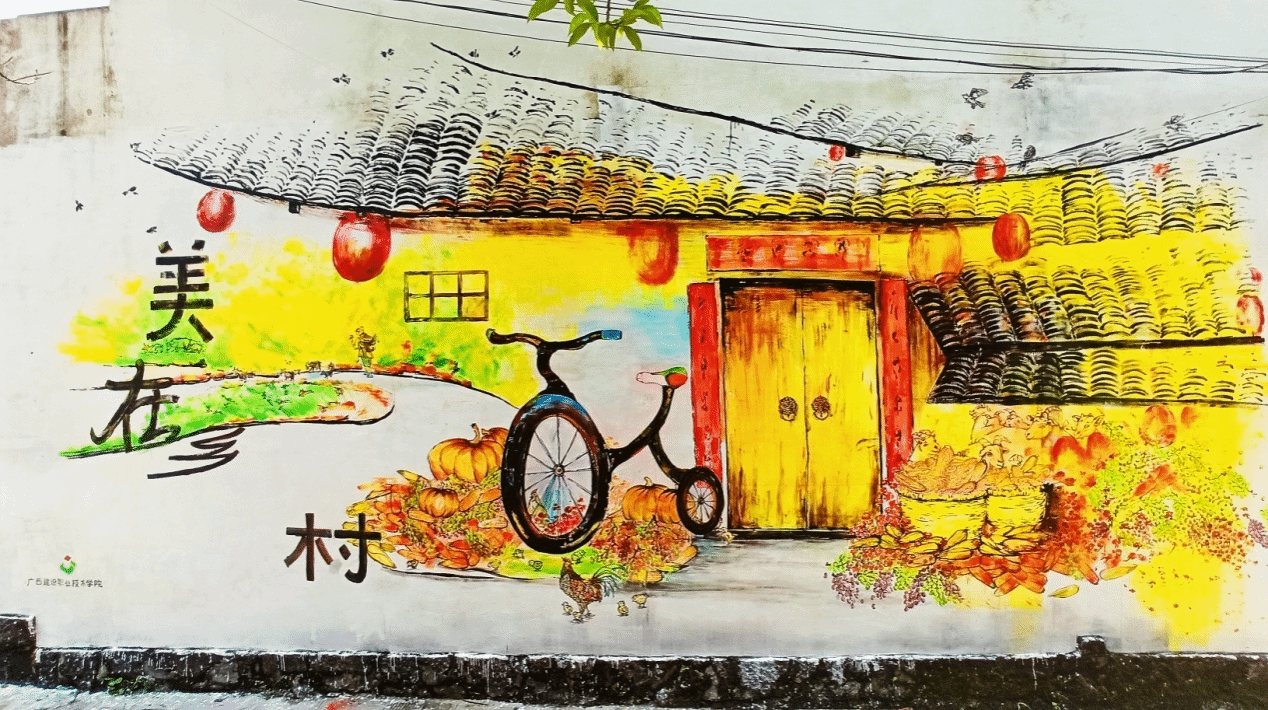 該實踐團2021年為河池市都安縣龍灣鄉(xiāng)群樂村繪制的“美在鄉(xiāng)村”主題墻