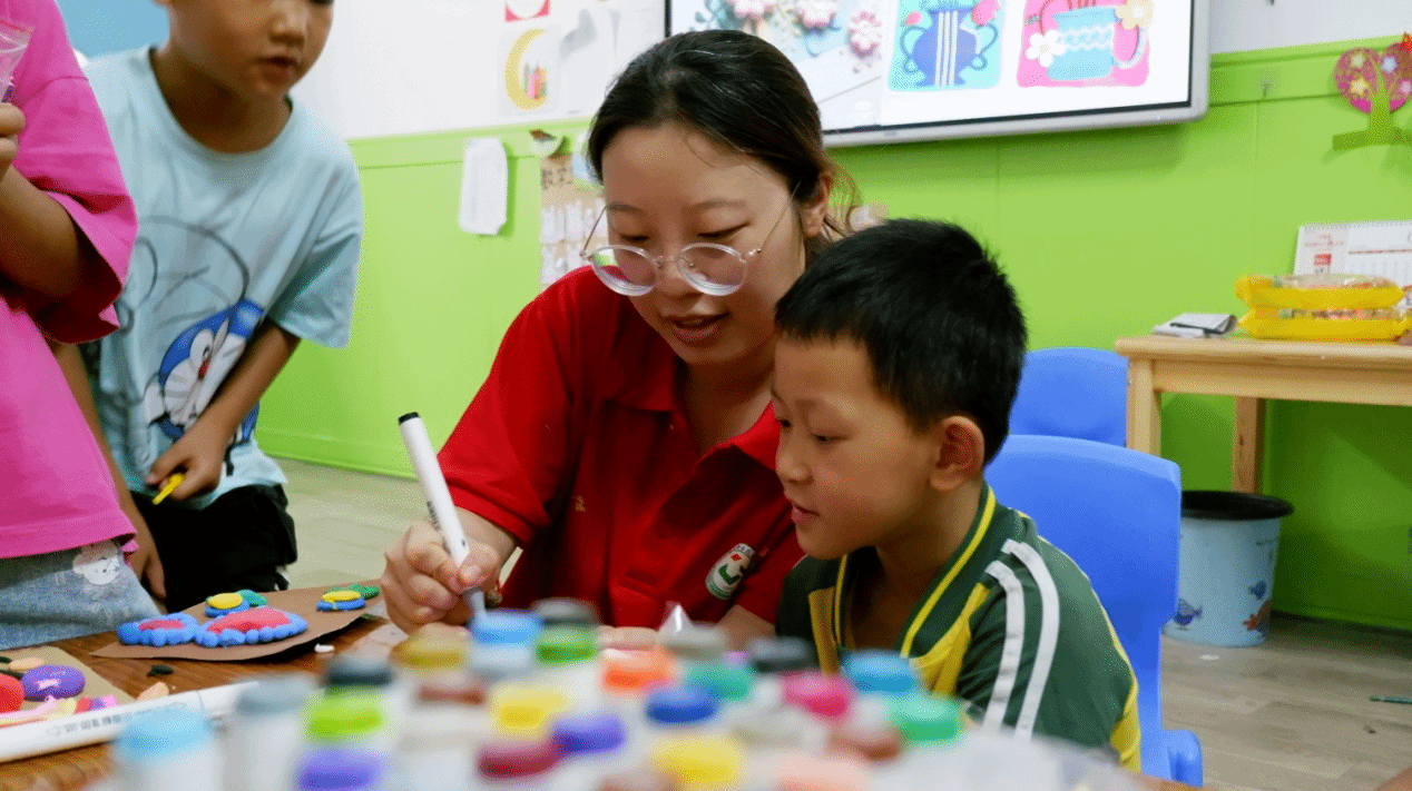 美育是審美教育、情操教育、心靈教育,也是豐富想象力和培養創新意識的教育,能提升審美素養、陶冶情操、溫潤心靈、激發創新創造活力。在實踐期間,“繪美鄉村”實踐團隊利用每日下午時間,在六寨鎮苗苗幼兒園開展美育體驗課堂。在課堂中,實踐團隊員們講解美育知識,引導小朋友們發揮自己的想象力,利用輕質黏土,制作手工作品。