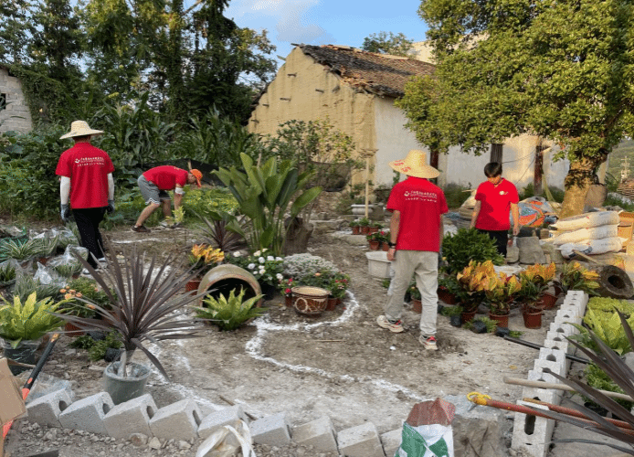 廣西建院7月25日訊(建筑與規(guī)劃學(xué)院 文/張懸鵬 圖/黎艷清)炎炎夏日,艷陽(yáng)高照。在河池市南丹縣六寨村水碾屯,一群身著紅色文化衫的大學(xué)生志愿者正在房前屋后緊張地忙碌著,他們是來(lái)自廣西建設(shè)職業(yè)技術(shù)學(xué)院建筑與規(guī)劃學(xué)院大學(xué)生暑期“三下鄉(xiāng)”社會(huì)實(shí)踐“鄉(xiāng)建使者·三微景觀”實(shí)踐團(tuán)(以下簡(jiǎn)稱(chēng)“實(shí)踐團(tuán)”)。志愿者通過(guò)因地制宜、就地取材、就勢(shì)造景,以綠色、節(jié)約、就近、就便原則,對(duì)農(nóng)戶(hù)“菜園、果園、花園”三微景觀和村屯公共區(qū)域景觀進(jìn)行美化和改造升級(jí),從而促進(jìn)村容村貌治理,服務(wù)宜居宜業(yè)和美化鄉(xiāng)村建設(shè)。