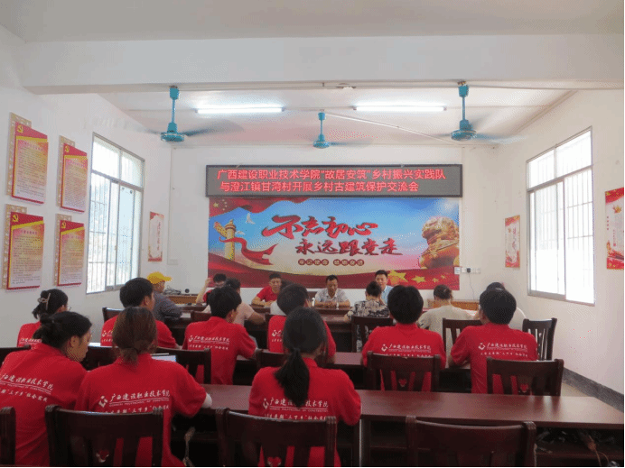 為充分尊重都安縣歷史文化,保存古建筑所在村落原始風(fēng)貌,在開展古建筑保護(hù)修繕實(shí)踐前,“故居安筑”團(tuán)隊(duì)認(rèn)真查閱收集都安縣古建筑的整體概況,制定了考察路線。到達(dá)都安縣后,團(tuán)隊(duì)先后在都安縣團(tuán)委、澄江鎮(zhèn)甘灣村村委與當(dāng)?shù)馗刹块_展鄉(xiāng)村古建筑保護(hù)交流會(huì)。