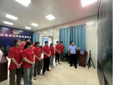 碩龍鎮(zhèn)邊境派出所民警為實踐團成員介紹邊境管控情況