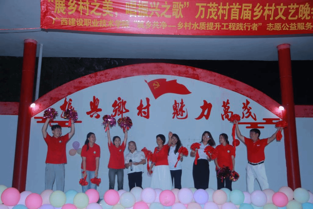 為積極探索鄉村文化振興的路徑,打造鄉村民族文化陣地,在駐村第一書記溫昌盛的大力支持下,“筑鄉共凈”鄉村振興促進團攜手萬茂村村委在該村文化大舞臺舉辦了“展鄉村之美,唱振興之歌”萬茂村首屆鄉村文藝晚會,團隊還為大舞臺描繪了鄉村振興主題墻繪。在文藝晚會當天,百余名村民早早匯聚到文化大舞臺前,隨著舞臺燈光的亮起,10余個精彩節目輪番上場,由志愿者和村民們組成的文藝表演隊為大家帶來了一場文化盛宴。