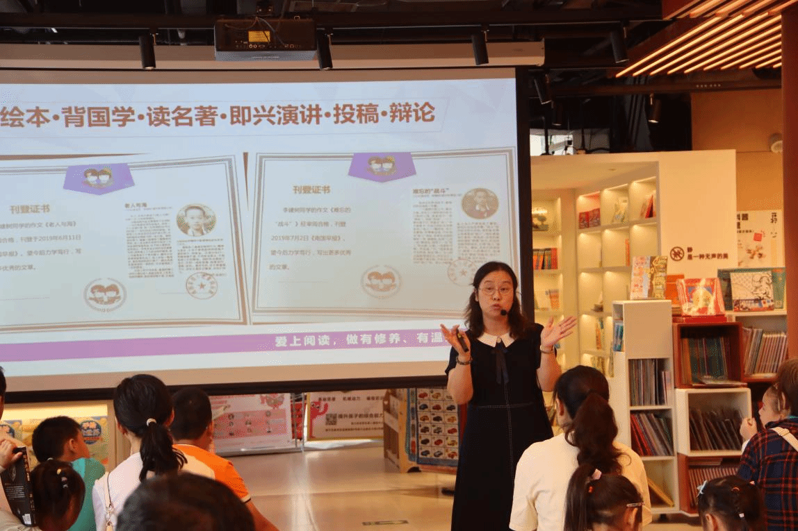 侯文淑老師帶領(lǐng)聽眾賞析一首小詩《提燈的人》,引出書是燈,閱讀照亮前行的路;書是橋,閱讀連接知識(shí)的彼岸。她分析了當(dāng)前導(dǎo)致孩子閱讀走淺的原因和不良影響,指出整本書閱讀與孩子心靈成長不容小覷。侯文淑老師重點(diǎn)圍繞如何創(chuàng)建書香家庭和開展親子閱讀,向與會(huì)家庭分享自己關(guān)于整本書閱讀的教學(xué)實(shí)踐與思考。她從選書規(guī)劃、親子閱讀模式、閱讀策略到閱讀方法,層層遞進(jìn),慢慢引導(dǎo)家長思考如何讓孩子愛上整本書閱讀。