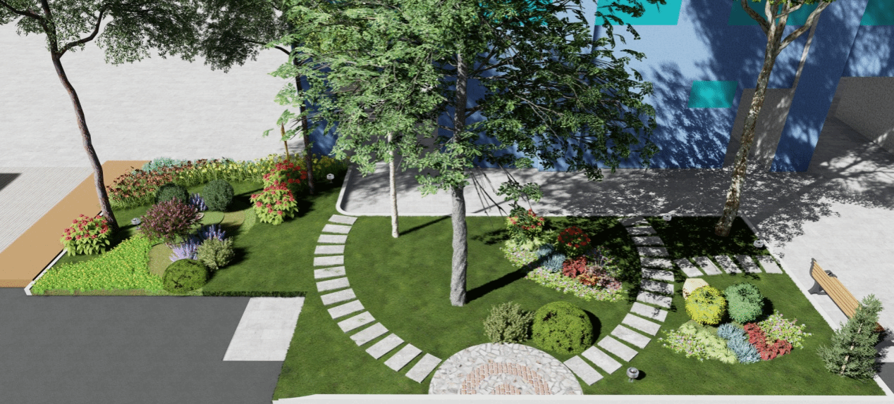 位于16棟學生宿舍對面的智慧洗衣房,內部敞亮清新,窗明幾凈,綠植盎然,但外圍綠化景觀略顯荒蕪,缺乏層次性和觀賞性,影響了師生的視覺感和體驗感。師生們認真勘察現場,結合場地、光照等實際情況,利用所學專業知識,因地制宜,科學配置植物,圓滿完成了該區域的改造設計任務,并參與了改造施工以及植物的后期養護。