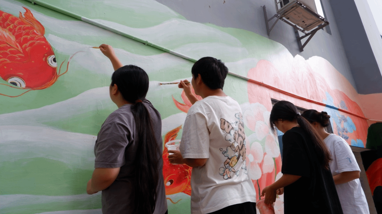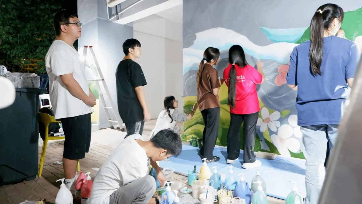 師生繪制智慧洗衣房墻畫