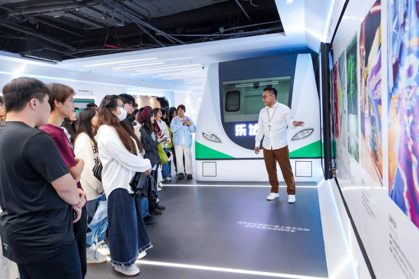 伴隨著陸海緣總監的解說,學生們參觀了樂達傳媒集團辦公區、樂達品牌殿堂以及地鐵場景營銷實驗室,了解樂達傳媒的技術亮點、發展現狀及未來規劃。
