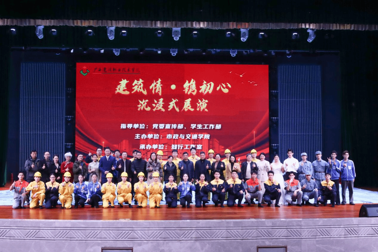 廣西建院12月6日訊(市政與交通學院 文/李姿蓉 圖/梁培寧)12月5日下午,我校在禮堂舉辦“建筑情鐫初心”沉浸式展演活動。學校黨委宣傳部、團委、市政與交通學院、建筑與規(guī)劃學院、設備與環(huán)境學院等有關部門及二級學院主要負責同志,以及各二級學院教師學生代表1300余人前來觀展。