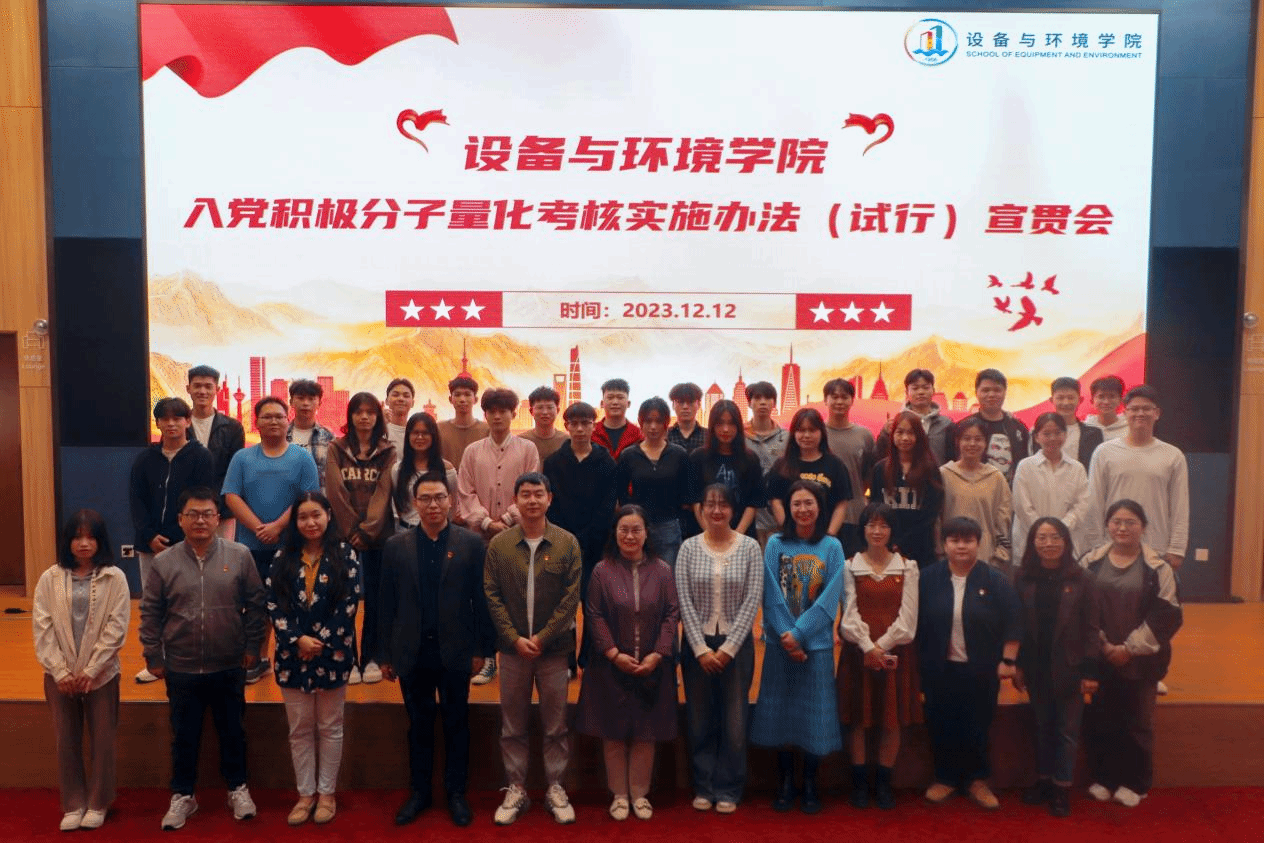廣西建院12月13日訊(設(shè)備與環(huán)境學(xué)院 文/冀旭月 圖/莫韋文濤)為進(jìn)一步加強(qiáng)黨員隊(duì)伍教育管理,12月12日,設(shè)備與環(huán)境學(xué)院在行政樓一樓報(bào)告廳召開(kāi)《設(shè)備與環(huán)境學(xué)院入黨積極分子量化考核實(shí)施辦法(試行)》宣貫會(huì),設(shè)備與環(huán)境學(xué)院黨總支書記侯文淑,學(xué)生支部黨員教師和學(xué)校43期、44期入黨積極分子共同參加了本次會(huì)議。本次宣貫會(huì)由學(xué)生第二黨支部書記冀旭月老師主持。