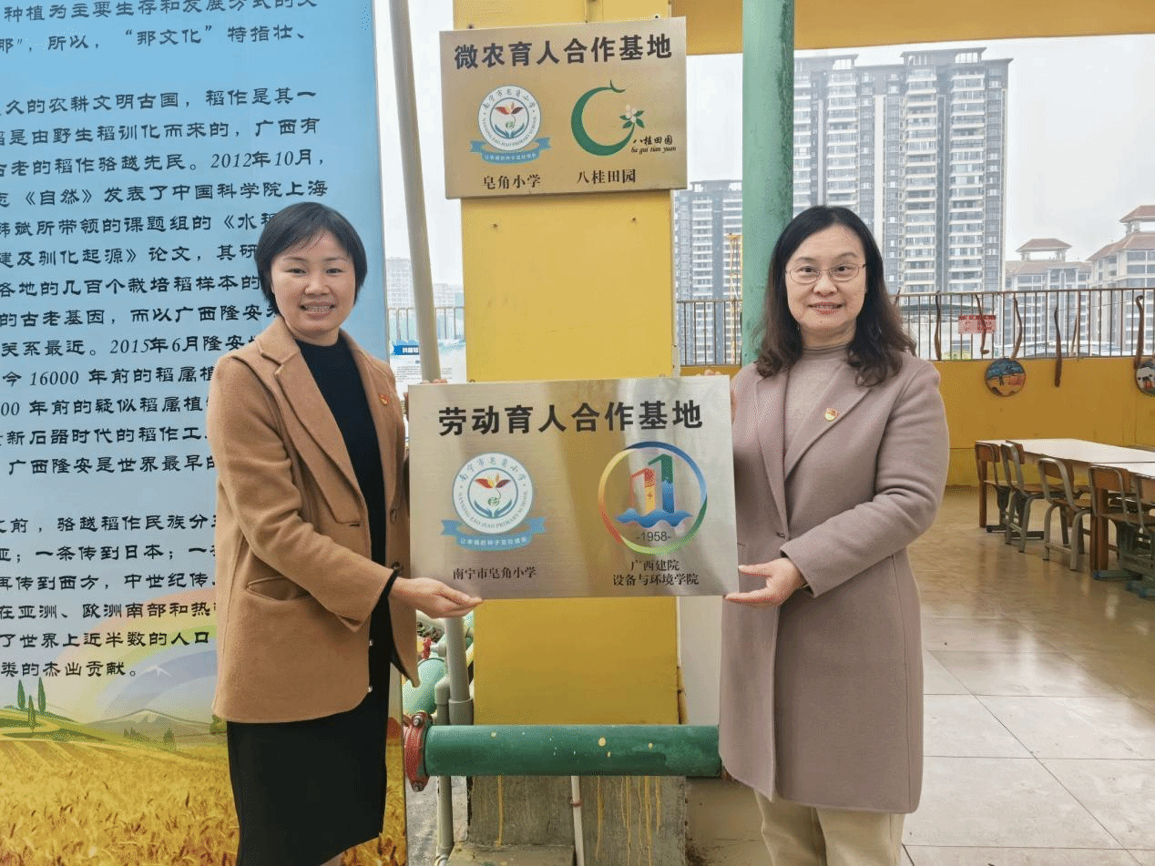 隨后,雙方開(kāi)展調(diào)研交流。座談會(huì)上,雙方就黨建聯(lián)建、合力育人、勞動(dòng)教育的內(nèi)容、形式、實(shí)踐經(jīng)驗(yàn)等方面進(jìn)行了深入交流,達(dá)成了合作共識(shí),初步探討了未來(lái)的共建方向,并舉行了“勞動(dòng)育人合作基地”掛牌儀式。在熱烈的掌聲中,設(shè)備與環(huán)境學(xué)院黨總支書(shū)記侯文淑與南寧市皂角小學(xué)校長(zhǎng)陳華靜在小學(xué)“幸福農(nóng)場(chǎng)”共同對(duì)“勞動(dòng)育人合作基地”進(jìn)行掛牌。這也標(biāo)志著雙方在勞動(dòng)教育領(lǐng)域的深度合作正式啟航。雙方表示,將共同努力推動(dòng)勞動(dòng)教育事業(yè)的發(fā)展,培養(yǎng)更多有擔(dān)當(dāng)、有創(chuàng)造力的優(yōu)秀青少年。