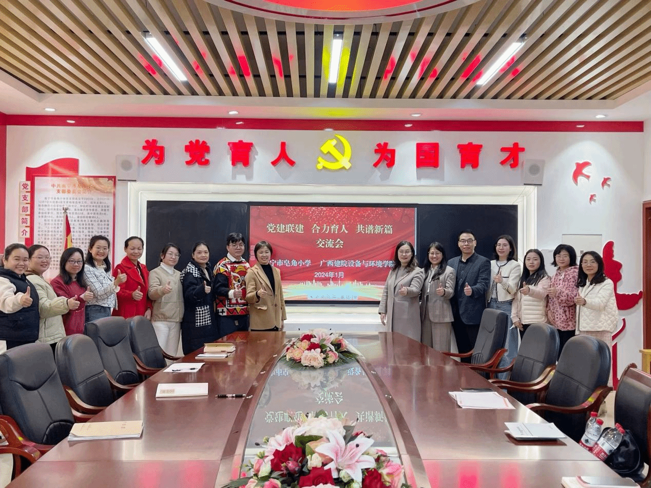 廣西建院1月6日訊(設(shè)備與環(huán)境學(xué)院 文/銀新月 圖/徐曉雪 毛森森)為開(kāi)拓勞動(dòng)實(shí)踐教育平臺(tái),1月5日下午,設(shè)備與環(huán)境學(xué)院黨總支書(shū)記侯文淑一行7人前往南寧市皂角小學(xué)開(kāi)展“黨建聯(lián)建·合力育人·共譜新篇”主題交流會(huì),并舉行“勞動(dòng)育人合作基地”掛牌儀式。會(huì)議由南寧市皂角小學(xué)校長(zhǎng)陳華靜主持,副校長(zhǎng)、年級(jí)主任等9人到場(chǎng)參加。