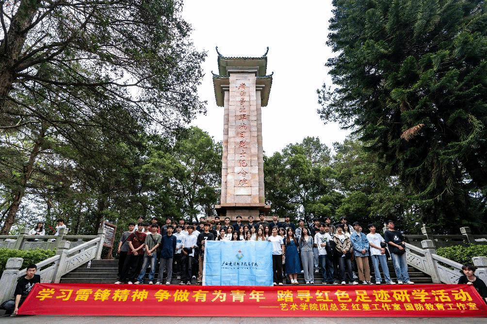 廣西建院3月18日訊(藝術設計學院 文/程舒陽 圖/程舒陽 秦旺成)為進一步激勵學生繼承革命先烈艱苦奮斗、無私奉獻的崇高精神,3月17日上午,藝術設計學院師生共計60余人赴青秀山廣西學生軍抗日烈士紀念碑,開展主題為“學習雷鋒精神 爭做有為青年 踏尋紅色足跡”的研學實踐活動。此次活動旨在通過實地參觀和深刻學習,緬懷革命先烈,傳承紅色基因,激發青年學子的愛國情懷、強國之志和報國之行。