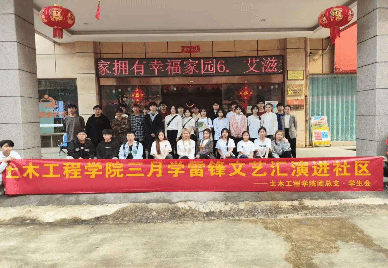 廣西建院3月26日訊(土木工程學院 譚妍)為弘揚雷鋒精神,增強新時代青年的責任與擔當,近日,土木工程學院團總支學生會組織藝術團成員赴廣西喜康療養院開展以“弘揚雷鋒精神,愛心進社區”為主題的文藝匯演活動。