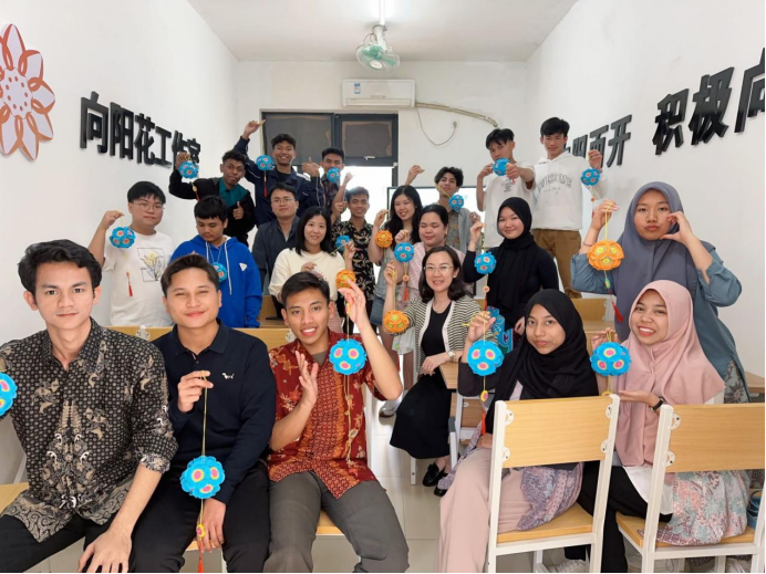 活動中,主持人介紹了關于“廣西三月三”的傳說、民俗風情及如何制作手工繡球等相關內容,留學生們紛紛動手嘗試制作繡球。在老師的指導下,同學們制作的繡球逐漸成形,活動現場處處洋溢著歡樂祥和的節日氛圍。留學生們表示,這樣的文化體驗活動非常有趣和開心。