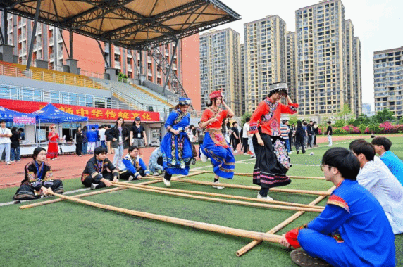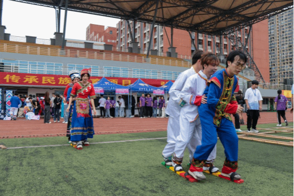 身著民族盛裝的同學(xué)們踏歌而來,或齊跳竹竿舞,或參加背簍投繡球,或參加三人板鞋競速,或拍照打卡留念,校園里刮起“最炫民族風(fēng)”,傳遞出濃濃的節(jié)日儀式感。同學(xué)們在充分感受民俗文化氣息,領(lǐng)略中華傳統(tǒng)文化之美的同時,也培養(yǎng)了團(tuán)隊合作精神。