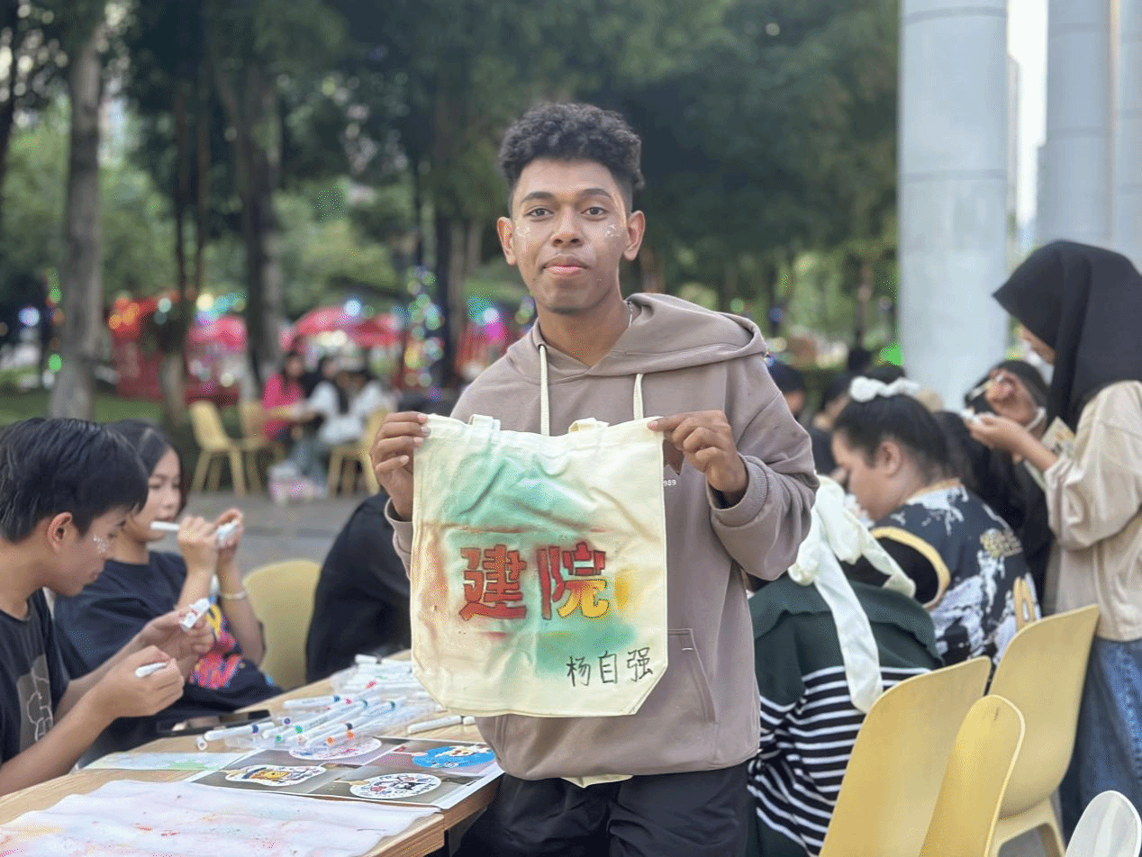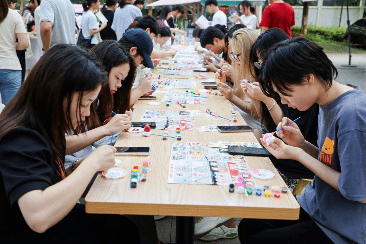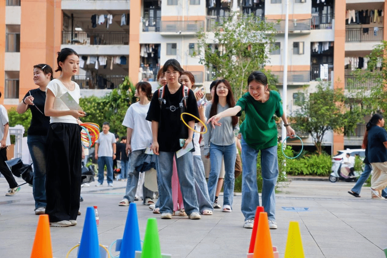 市政與交通學(xué)院根據(jù)建院大學(xué)生的心理特點(diǎn),設(shè)置了“童年游戲”“治愈手作”“心理互動(dòng)”三個(gè)主題共12項(xiàng)心理體驗(yàn)活動(dòng),如“帆布包噴繪”“石膏公仔涂色”“協(xié)作丟沙包”“解壓跳皮筋”……通過沉浸式體驗(yàn)童年時(shí)期的解壓游戲、體育運(yùn)動(dòng),引導(dǎo)同學(xué)們釋放壓力、以體育心。