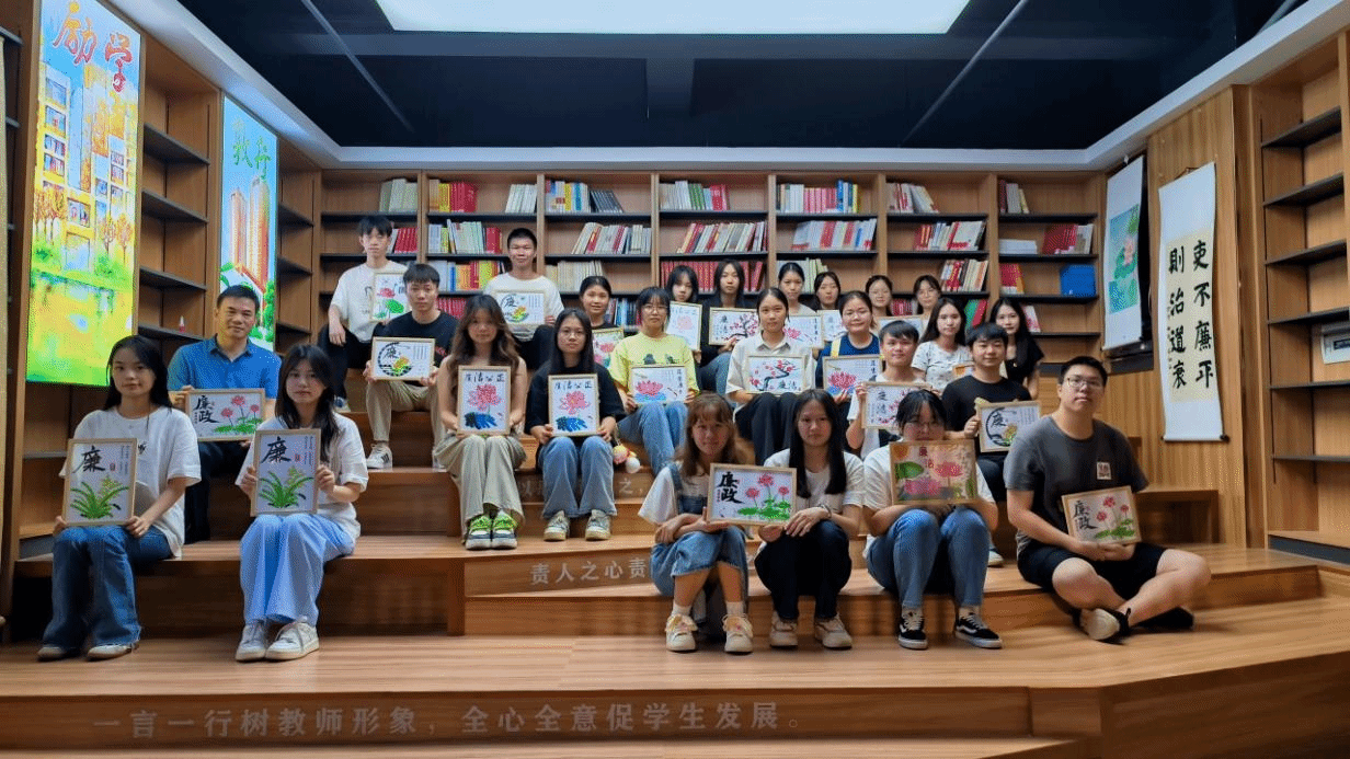 為增強對廉潔文化的認知和理解,學院團總支組織新發展團員代表進行了廉潔詩詞與廉潔故事分享。與會團員還進行了廉潔主題紐扣貼畫手工活動。同學們用心用情,互幫互助,一幅幅以“蓮”為主題的貼畫生動又形象地展現在大家面前。