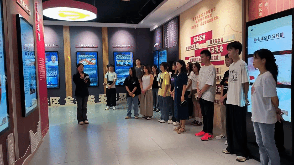 全體團員在講解員的帶領下,同學們參觀了學校廉潔教育基地,學習基地主要展示的六大板塊內容,深刻認識了黨反腐敗的決心,也了解了學校“清廉建院”的建設情況和全面從嚴治黨情況,讓同學們進一步認識到要知敬畏、存戒懼、守底線。