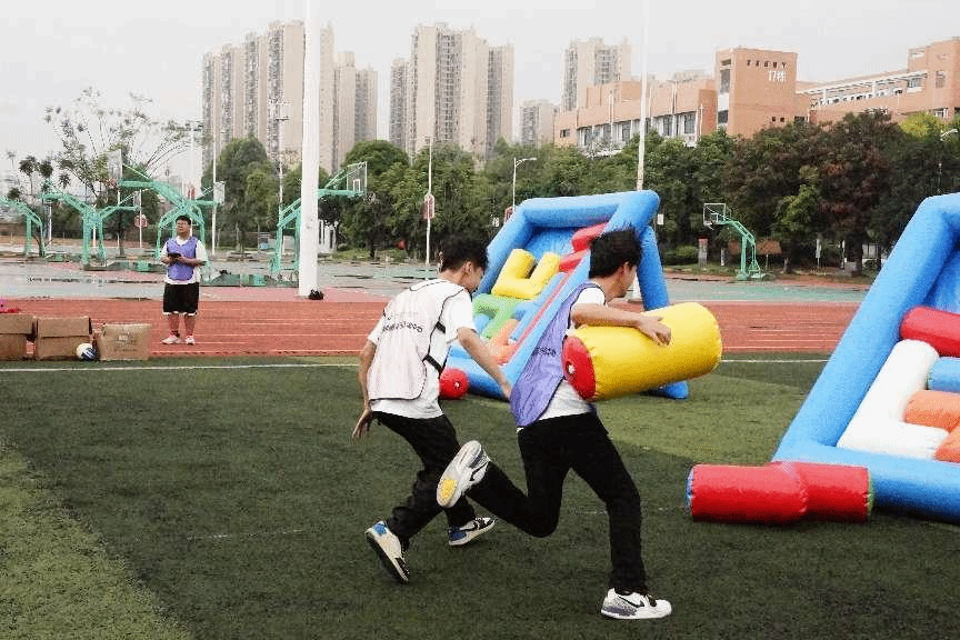 活動伊始,班級同學隨機分成兩組。團輔老師組織同學們以小組形式開展了桃花朵朵開、老虎獵人槍、大風吹等破冰游戲,以及同心鼓、摸石過河、傳遞呼啦圈、高空跨越(斷橋)、梅花樁、信任背摔等素質拓展項目。同學們在活動中積極溝通、默契配合、精誠協作,拉近團隊成員之間的距離,順利完成一系列富有挑戰性和趣味性的團隊游戲,充分展現了大學生朝氣蓬勃的青春風采。