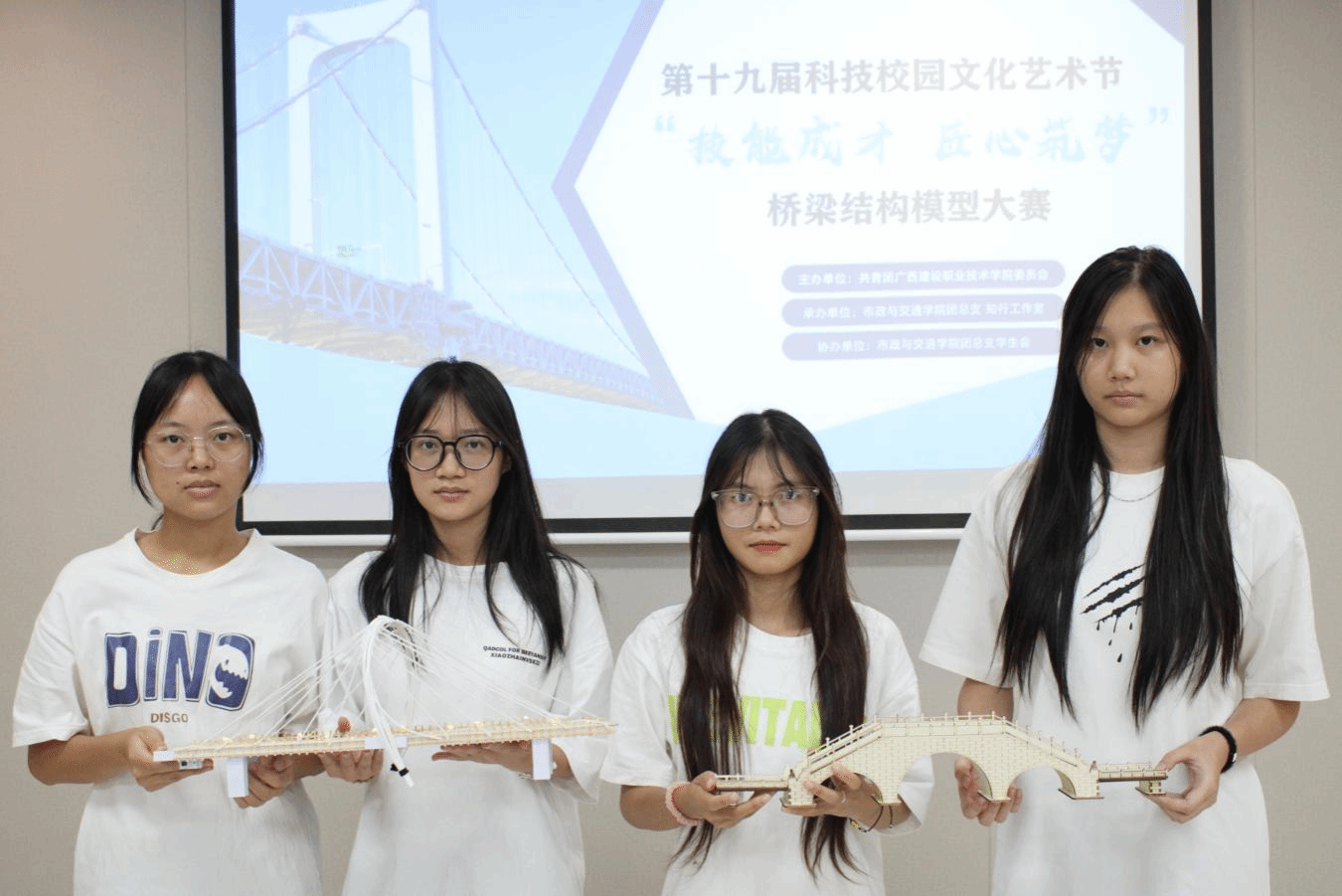 廣西建院6月26日訊(市政與交通學院 文/何炎 圖/謝湘宜)為培養(yǎng)大學生的創(chuàng)新能力、實踐能力和團結協(xié)作精神,豐富校園的學術氛圍,促進學生的全面發(fā)展。6月25日,由校團委主辦,市政與交通學院承辦的第十九屆校園科技文化藝術節(jié)“技能成才 匠心筑夢”橋梁結構模型比賽在青年之家舉行。本次比賽參賽隊伍有51支,共300余名師生展示工匠風采。