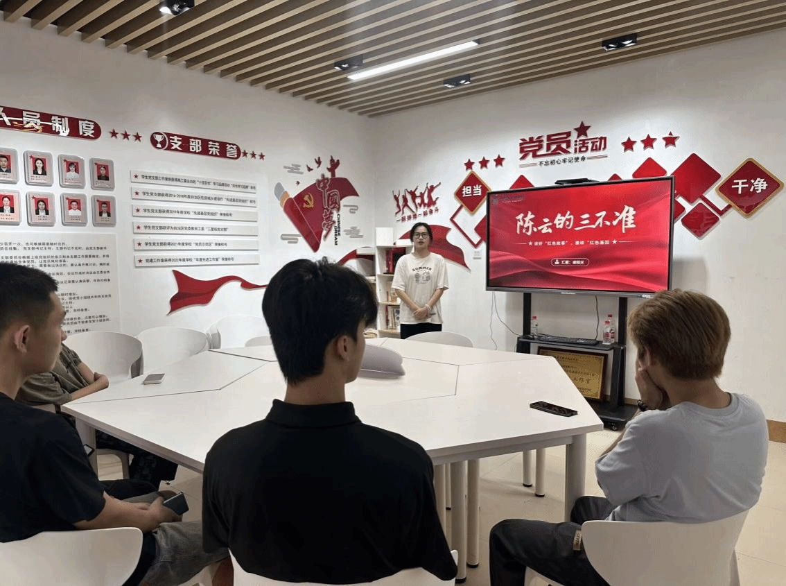 “這不是普通的木箱這個木箱陪伴劉少奇同志度過了許多艱苦的歲月,承載著老一輩無產階級革命者的革命精神和崇高品德。”在講述過程中,陸敏將黨史小故事和專門制作的PPT相結合,還不時與臺下同學互動交流,學習氛圍越發濃厚。