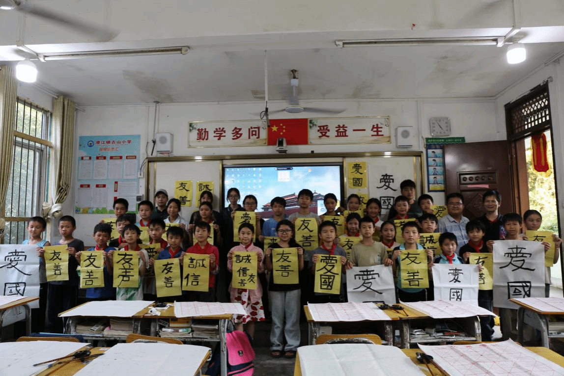 為幫助鄉(xiāng)村小學(xué)生說(shuō)好普通話,寫好規(guī)范字,提升文化素養(yǎng),助力鄉(xiāng)村文化振興,學(xué)校語(yǔ)言文字工作委員會(huì)組建大學(xué)生推普實(shí)踐團(tuán)隊(duì)繼續(xù)深入幫扶的自成村古山小學(xué)開展主題為“大手拉小手 推普筑未來(lái)”的推普實(shí)踐活動(dòng),通過(guò)“普通話橋梁”公益課堂和“墨香傳承”書法公益課堂的形式,推廣普及國(guó)家通用語(yǔ)言文字。