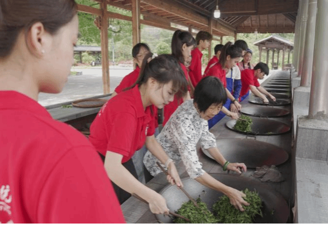 在韋潔群大師的指導下,實踐團成員親身體驗了晾青、殺青、揉捻、堆悶、復揉、烘干等古法制茶技藝工序。“殺青時一定要控制火候,茶青下鍋后,要先燜炒再揚炒……”“揉捻時要用手掌心輕揉,不宜加壓過久……”韋潔群大師一邊細致地講授其中要領,一邊手法嫻熟地進行操作示范,實踐團成員認真地跟隨韋潔群大師操作。從茶青到成品茶,層層工序,讓實踐團成員對古法制茶技藝有了更深的認識,加深了對六堡茶文化的理解和認同,也讓大家更加珍惜每一杯香茗背后的付出。