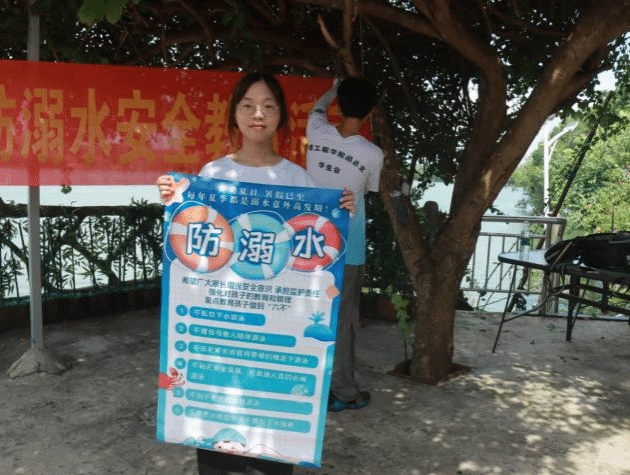 實(shí)踐團(tuán)展示防溺水宣傳海報(bào)