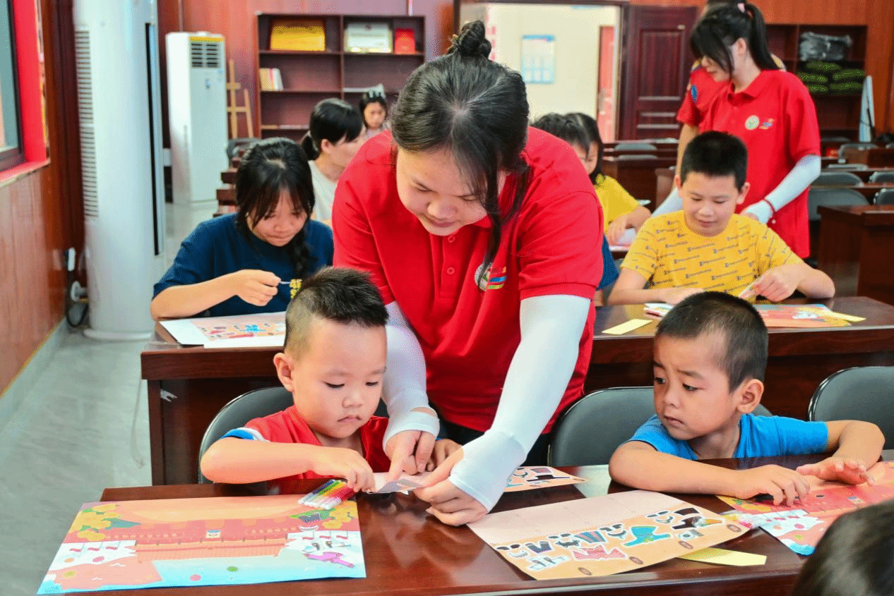 實(shí)踐團(tuán)指導(dǎo)小朋友們繪畫