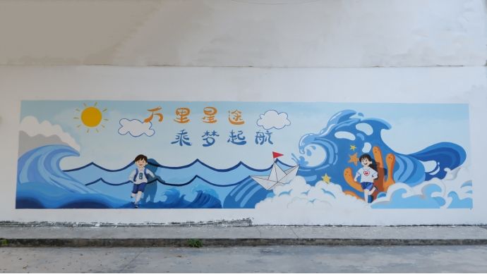 實踐團繪制的“萬里星途 乘夢起航”主題文化墻
