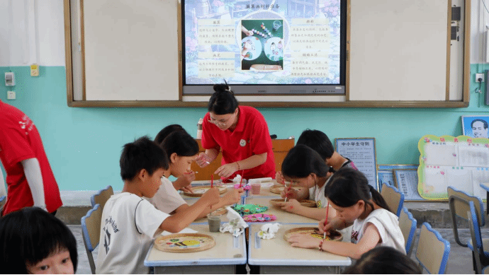 為豐富青少年假期生活,加強青少年美育教育,提升美育素養,實踐團成員在紅渡中心小學開展了兩期美育微課堂。一是開展傳統文化賞析課,宣揚中華優秀傳統文化,增強文化自信,涵養傳統美德;二是手繪簸箕創意畫,實踐團指導小朋友們畫出心中美麗家鄉風景,引導小朋友成為鄉村振興的積極倡導者和自覺踐行者。