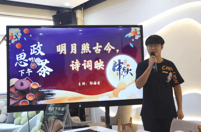 廣西建院9月17日訊(管理工程學院黃欣欣 梁甜甜)品韻中秋,情系家國。9月17日,管理工程學院在海棠工作室舉辦了以“明月照古今,詩詞映中秋——詩詞里的家國情懷”為主題的思政下午茶活動。學院黨總支副書記郭海棠老師與25位同學面對面交流。