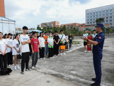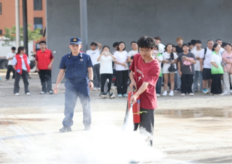 學(xué)生們現(xiàn)場進(jìn)行消防滅火器的實(shí)際操作