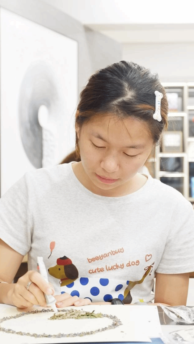 活動中,學生們在了解中草藥的分類和作用,制作方法和注意事項后,紛紛燃起了對中草藥香氛畫制作的興趣,開始運用粘、貼、拼、嵌等技藝,將中草藥當做“畫筆”和“顏料”,創作出一幅幅獨具特色的畫作。