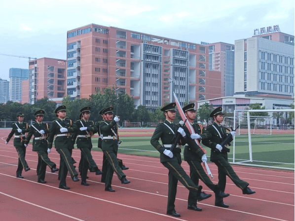 升國(guó)旗,奏國(guó)歌。晨曦漸露,儀仗隊(duì)精神奕奕,整齊劃一,護(hù)送國(guó)旗進(jìn)場(chǎng)。紅旗高揚(yáng),同學(xué)們整齊列隊(duì),精神抖擻,以最飽滿的精神面貌奏唱國(guó)歌。