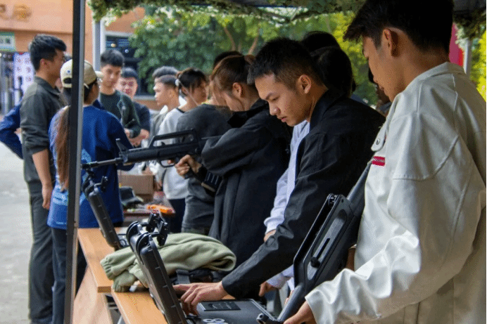 來訪師生體驗(yàn)無線電測向和模擬射擊項(xiàng)目