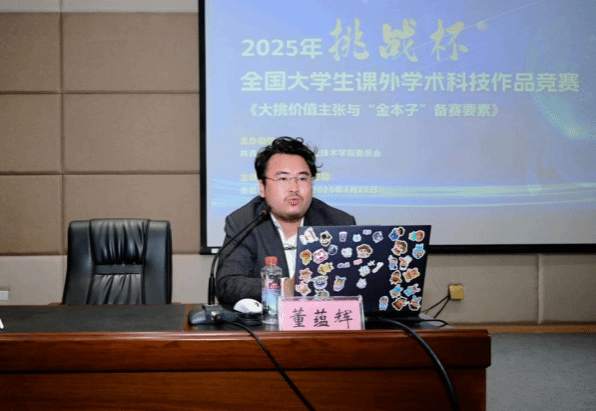 董蘊輝博士以《“大挑”價值主張與“金本子”備賽要素》為題,深入闡述“挑戰杯”大賽的核心價值。他從大賽介紹、賽事淵源及發展歷程等多個維度,幫助現場師生清晰認識“挑戰杯”,增強大家對這項重要賽事的情感認同與全面認知。董蘊輝博士結合案例分析,將賽事時間、賽制要求、規則要點及材料制作關鍵等內容進行了細致講解。他以過往獲得國家級獎項的項目為實例,生動剖析項目從選題到落地的全過程,使抽象的規則變得通俗易懂,為師生備賽提供實操經驗。