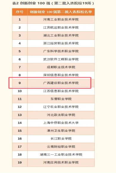 廣西建院1月3日訊(文/教務處 鄔金池 招生就業(yè)處 林秀麗)近日,由“金平果排行榜”評選的全國高職院校“產(chǎn)教融合100強”和“創(chuàng)新創(chuàng)業(yè)100強”第二批項目評選結(jié)果正式揭曉,我校成功入選全國高職院校產(chǎn)教融合、創(chuàng)新創(chuàng)業(yè)“雙百強”院校。