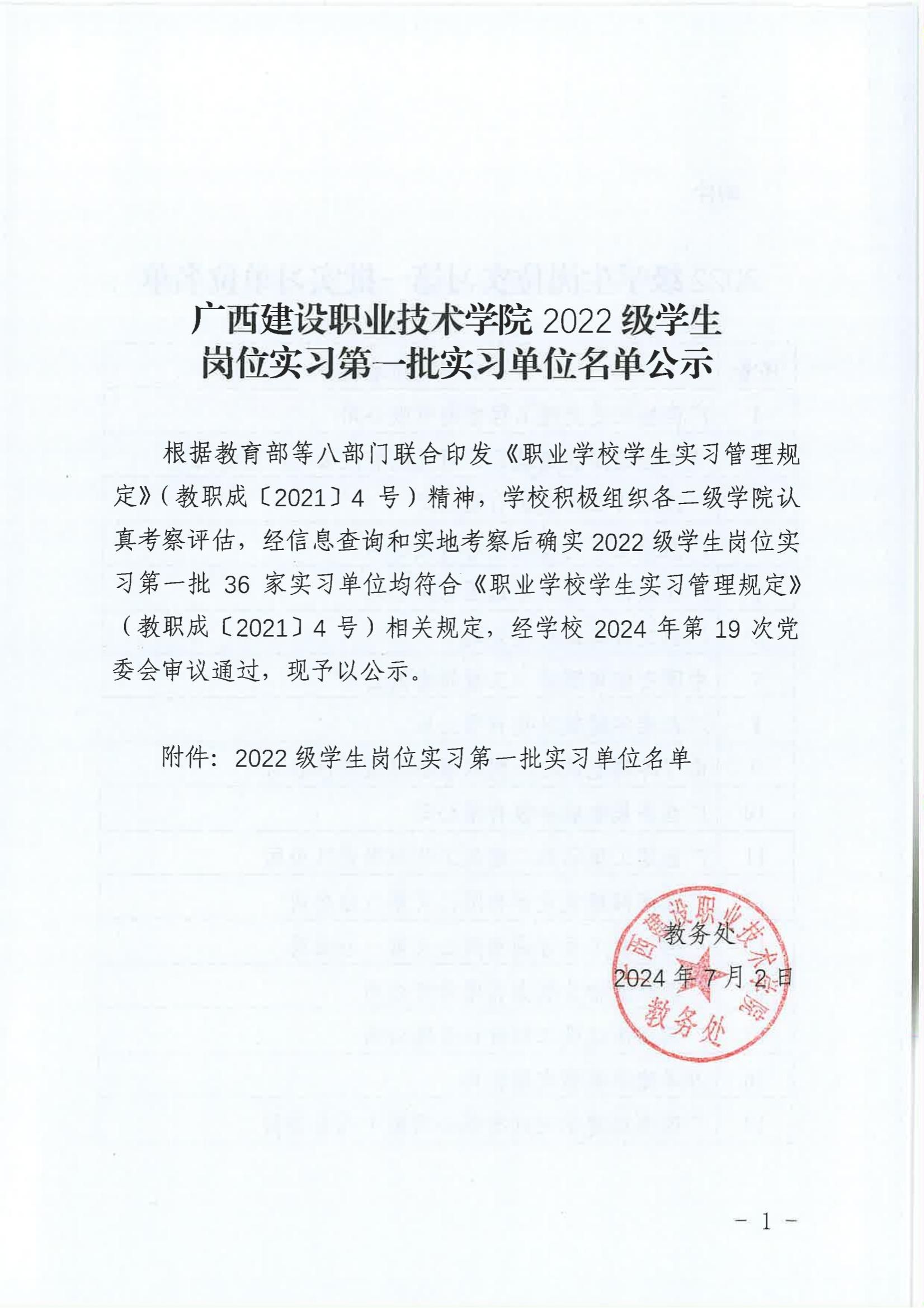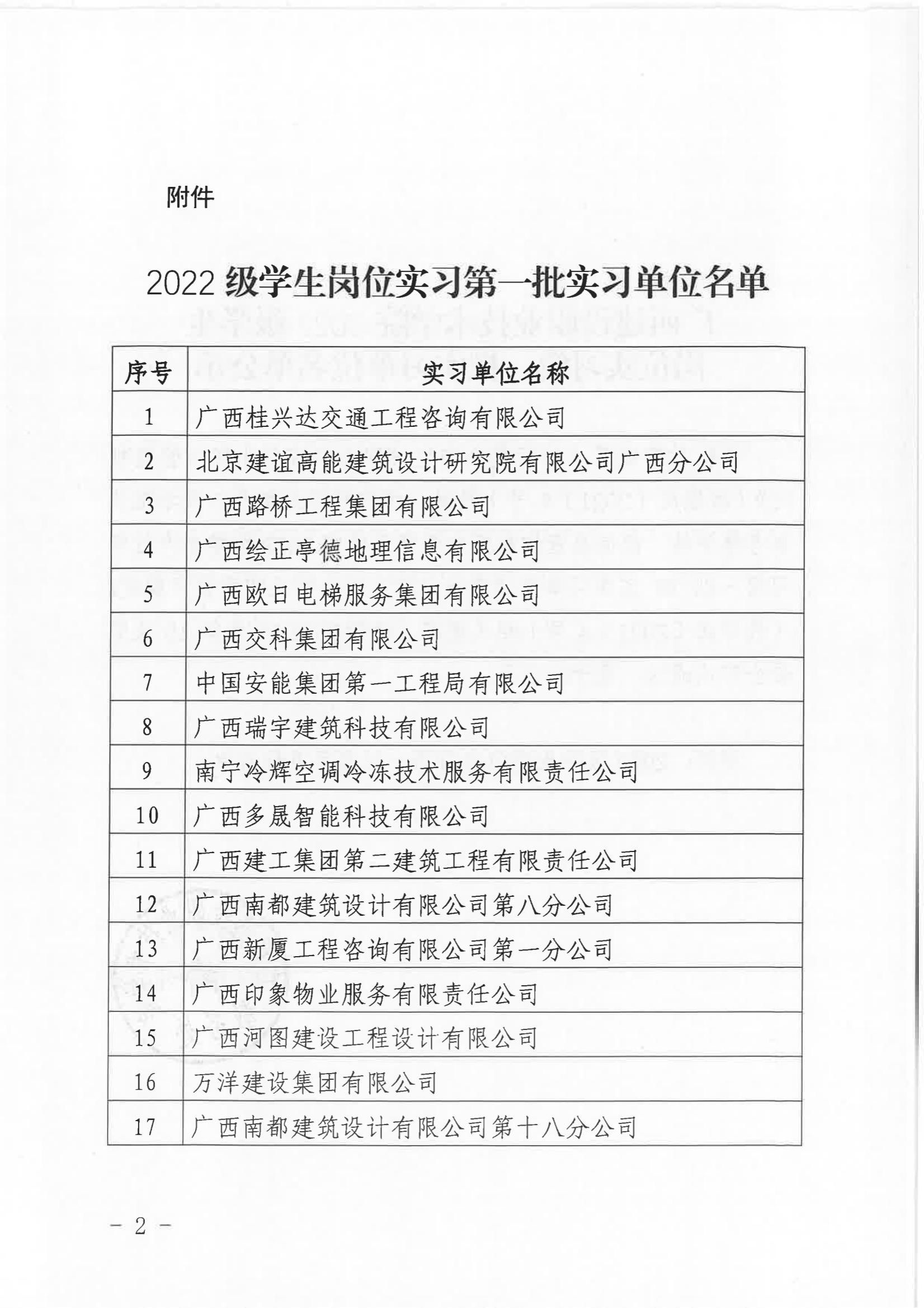 廣西建設(shè)職業(yè)技術(shù)學(xué)院2022級(jí)學(xué)生崗位實(shí)習(xí)第一批實(shí)習(xí)單位名單公示