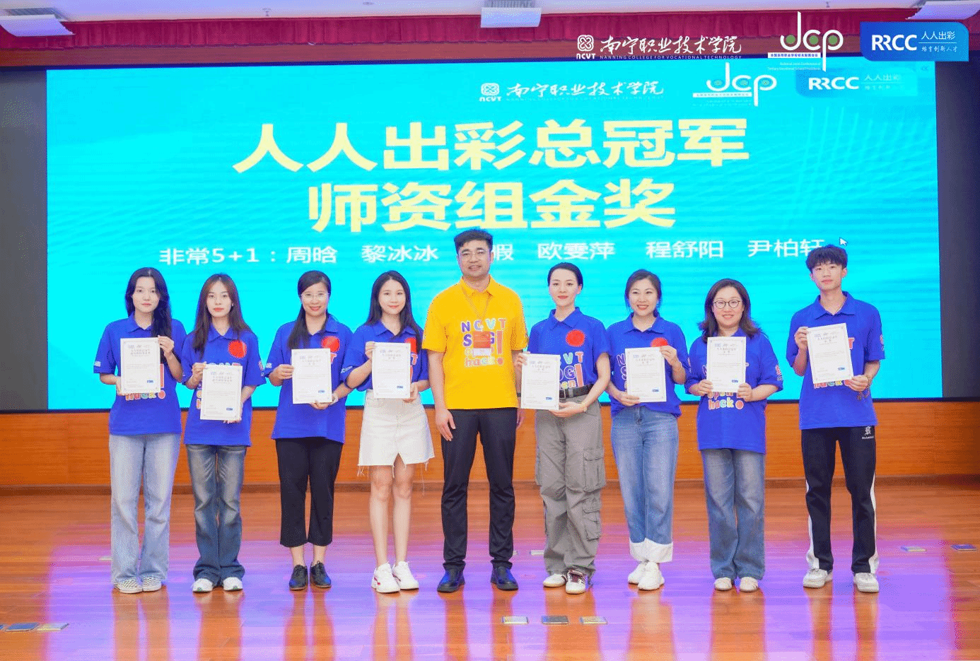 經過兩天緊張而激烈的角逐,我校教師周晗、歐雯萍、程舒陽、黎冰冰、吳瑕組成的團隊憑借《文創產業全案陪跑模式搭建》項目榮獲師資組總冠軍金獎團隊;學生吳秋樊、馮雅樂則以《智繪場景——致力于人工智能與教育相融合》項目斬獲學生組最具團隊風采獎。