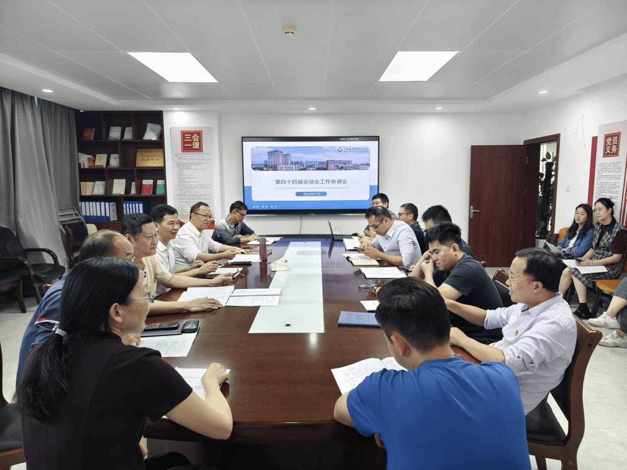 會上,人文教育學院俸洪斌副院長介紹了本屆運動會的工作方案、籌備進展、會序及競賽規程等內容。籌備小組負責人協商落實了各個工作環節,明確了各自的職責,確保了運動會各個環節能夠高效有序推進。針對可能出現的問題,與會者共同探討了多種解決方案,并找到最有效的應對措施。
