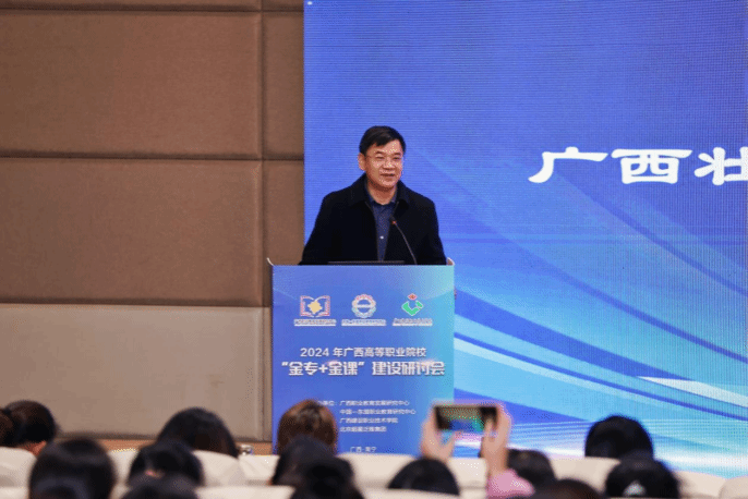 廣西建院12月14日訊(文/教務處 凌雅君 圖/黨委宣傳部)12月13日,由廣西職業教育發展研究中心、中國—東盟職業教育研究中心主辦,廣西建設職業技術學院承辦的2024年廣西高等職業院校“金專+金課”建設研討會在學校四教一樓報告廳舉行。